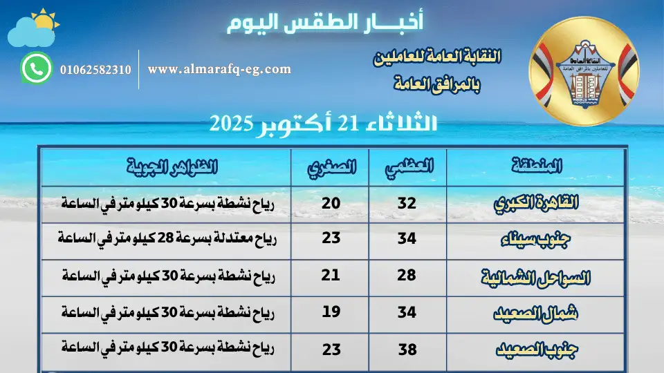 عزيزى القاريء نقدم اليكم أخبار طقس اليوم الثلاثاء الموافق 21 أكتوبر 2025